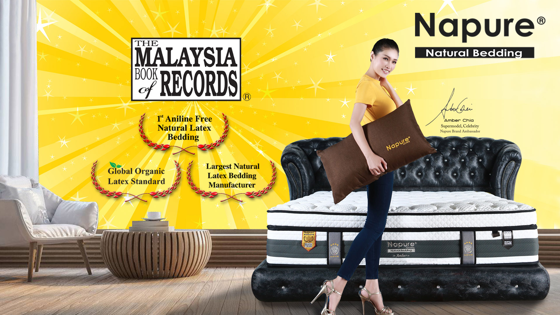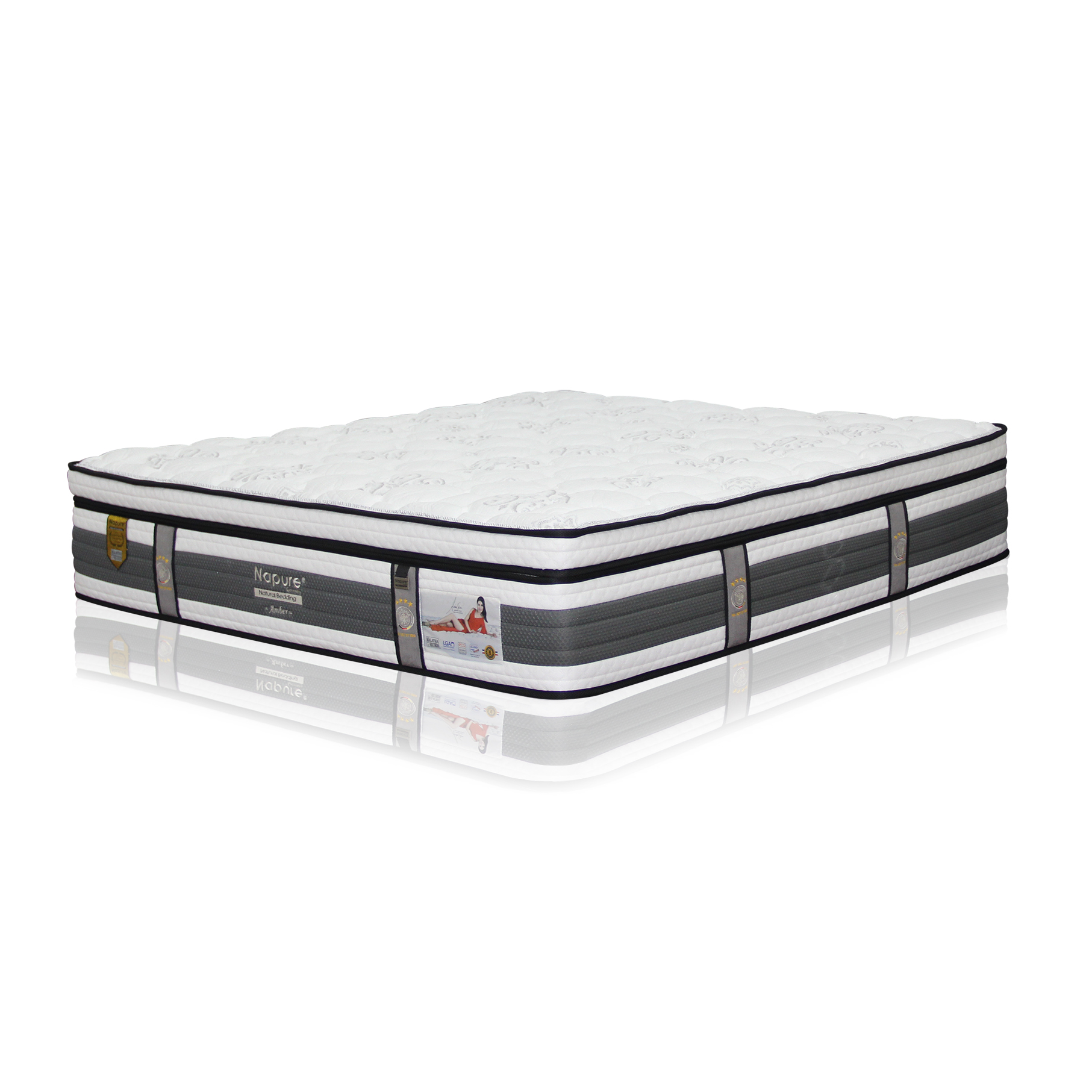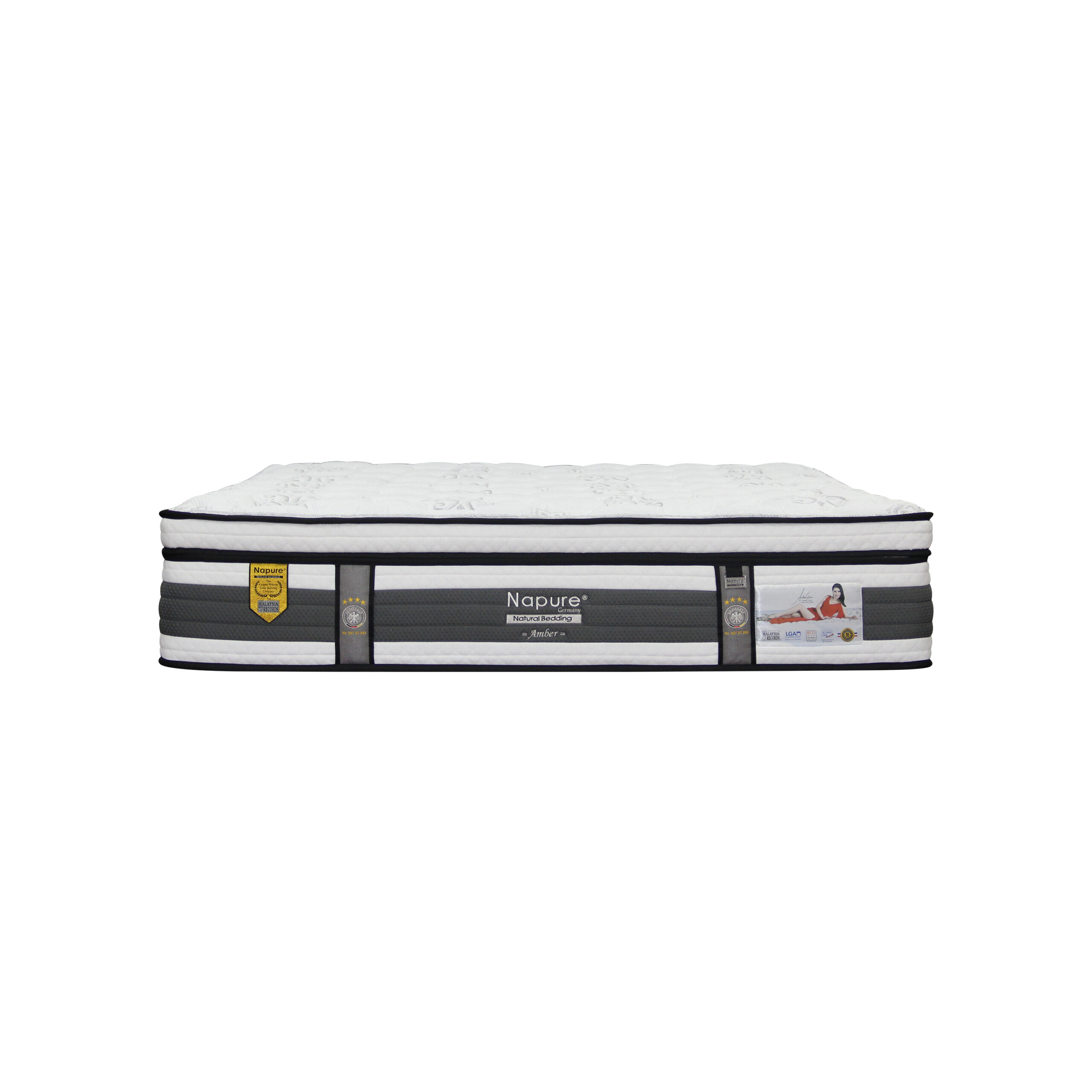 Napure Amber Chia Series mattresses are made of high quality 7 zone 100% natural latex covered with newly-innovated icy cool ticking to provide a cool and refreshing sleeping surface while providing ergonomic support & a comfort layer that allows your body to rest comfortably on it.