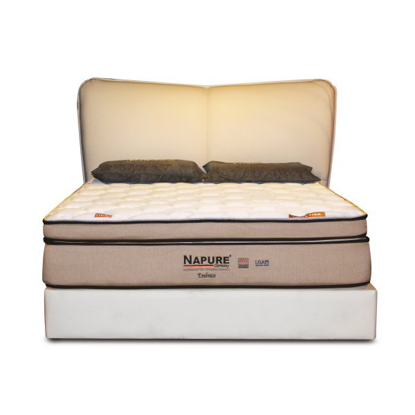 Napure Embrace mattress is made of premium Napure 7 zone 100% natural latex of varying hardness. It contains firm latex as the base and medium firm latex at the upper layer to provide comfort cushioning for pressure relieving. It is complemented with a cooling viscose cover for a softer, cooling sleeping surface.