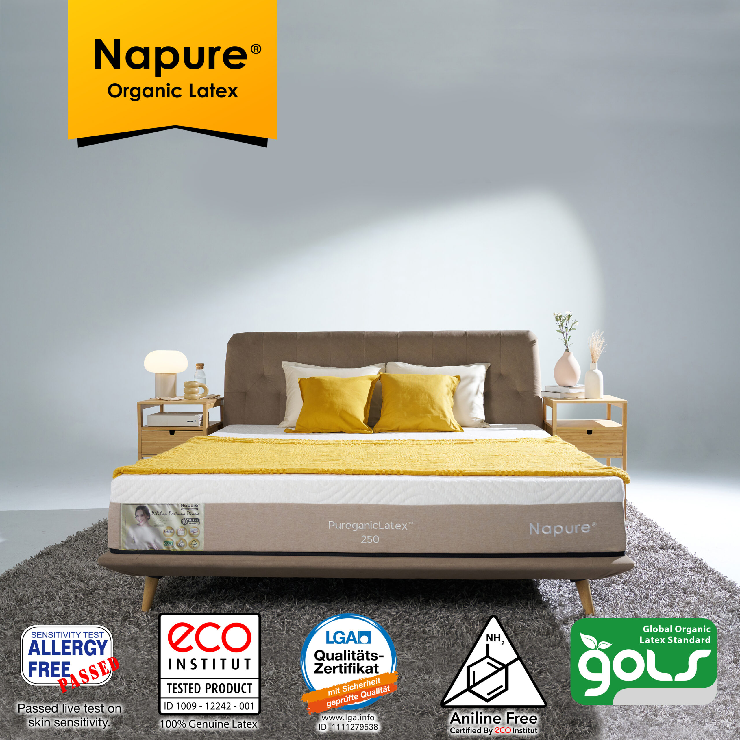 Napure PureganicLatex Series mattresses are made of high quality Napure 7 zone natural latex covered with icy cool ticking to provide an extremely cool and refreshing surface.